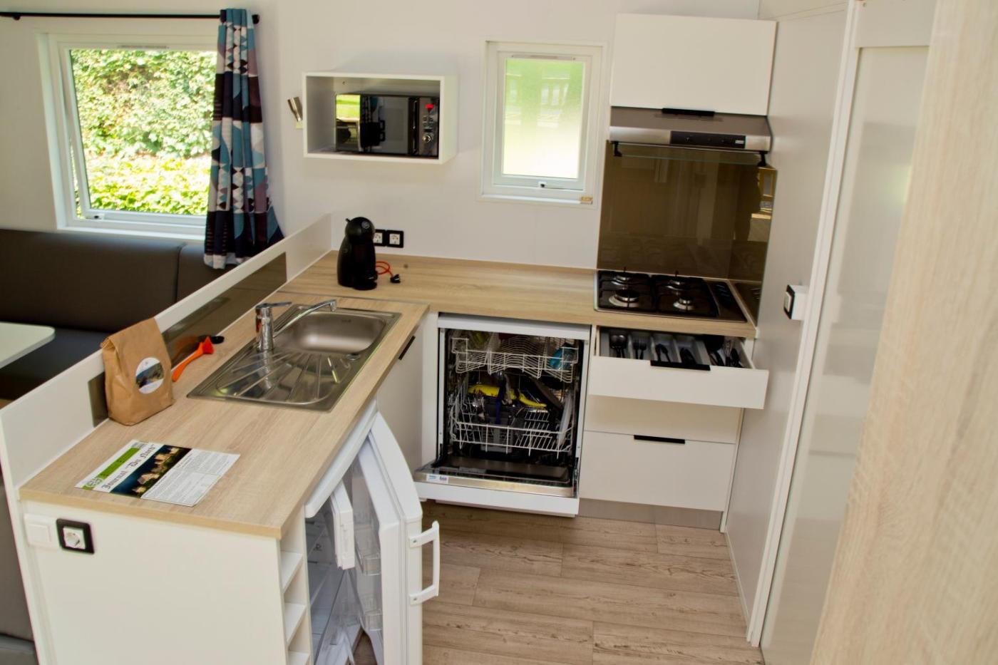 Three-Bedroom Chalet. Boasting a private entrance, this chalet also includes 1 living room, 3 separate bedrooms and 1 bathroom with a shower. In the fully equipped kitchen, guests will find a stovetop, a refrigerator, a dishwasher and kitchenware. Featuring a terrace with mountain views, this chalet also offers a coffee machine and a flat-screen TV with satellite channels. The unit has 5 beds.